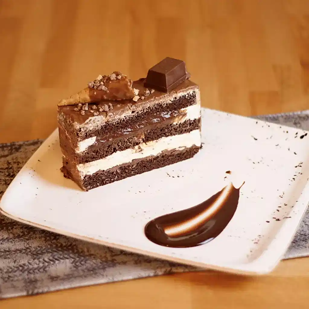 Çikolatalı Keki, akışkan çikolatası ve kit kat bisküvi parçaları