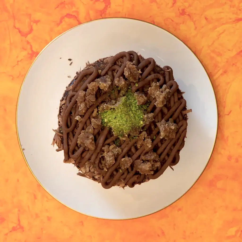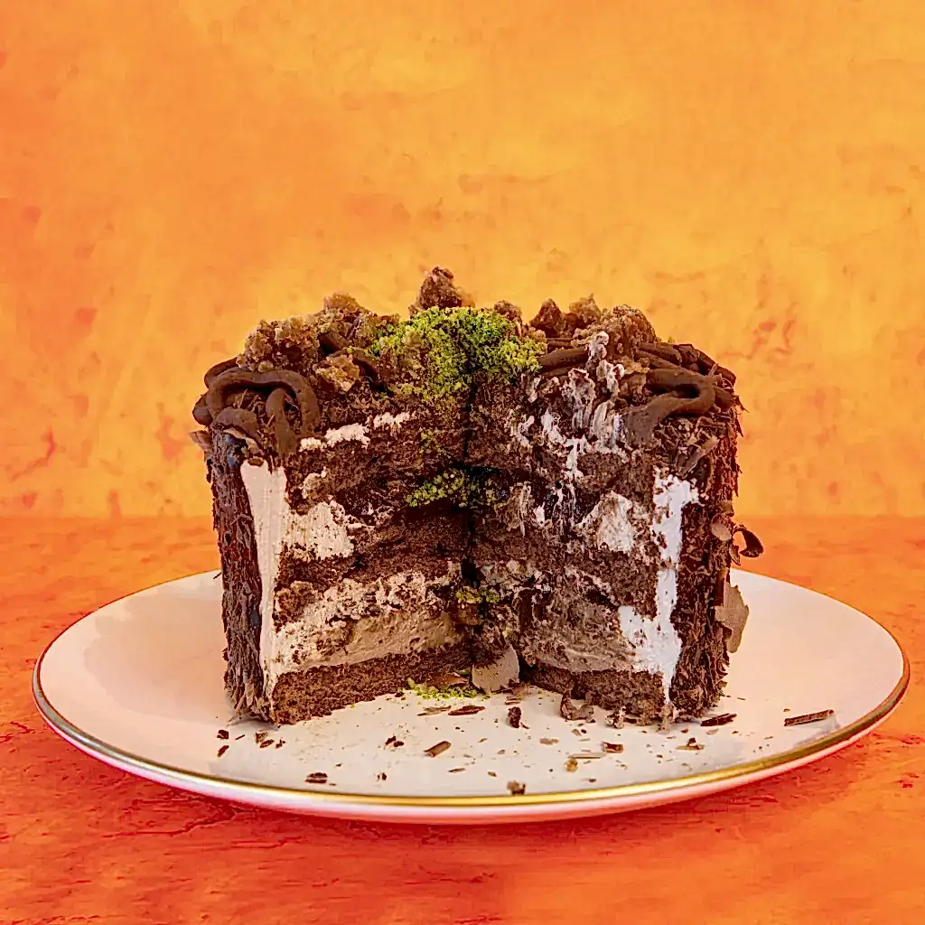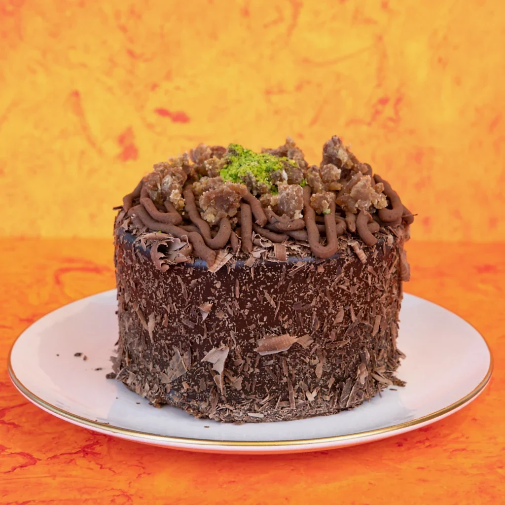 Çikolatalı keki, kestane püresi ,kestane parçaları ve parça çikolata