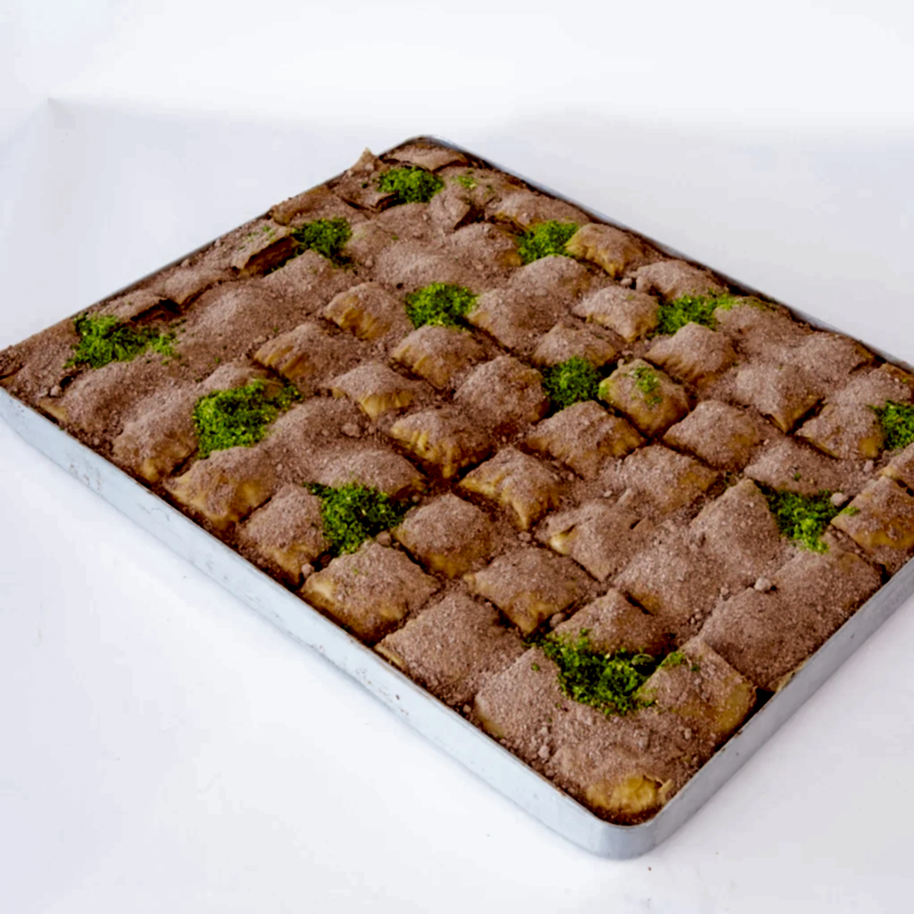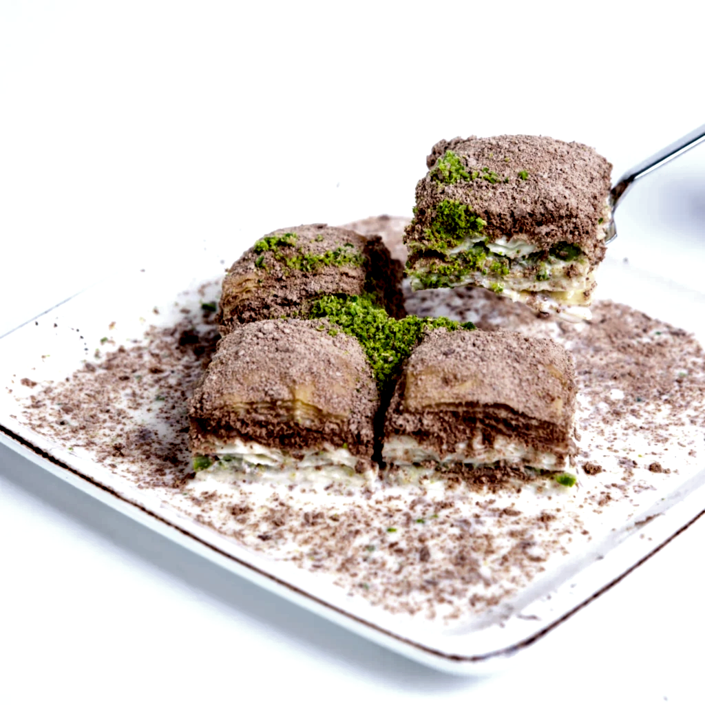 Süt Kreması, Kırık Antep Fıstığı, Üzerinde Toz Belçika Çikolatası,